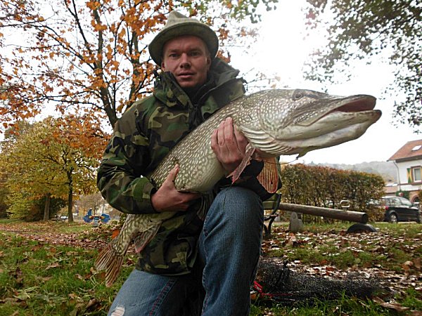 Gefangen: am 06.11.2011 am Würzbacher Weiher von Daniel Labbe Angaben zum Hecht: 107 cm lang und 9,0 kg schwer