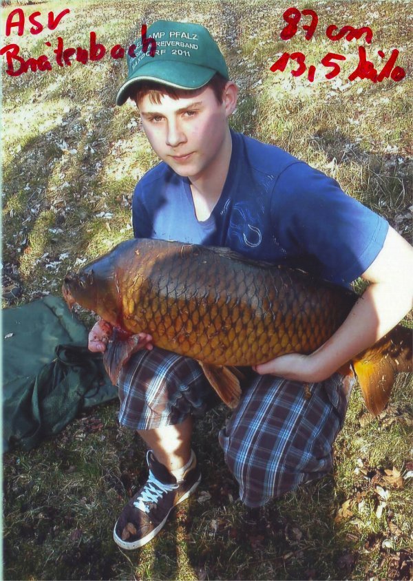 Gefangen: Im März 2012 am Breitenbacher Weiher von Sven Seeber Angaben zum Karpfen: 87 cm lang und 13,5 kg schwer