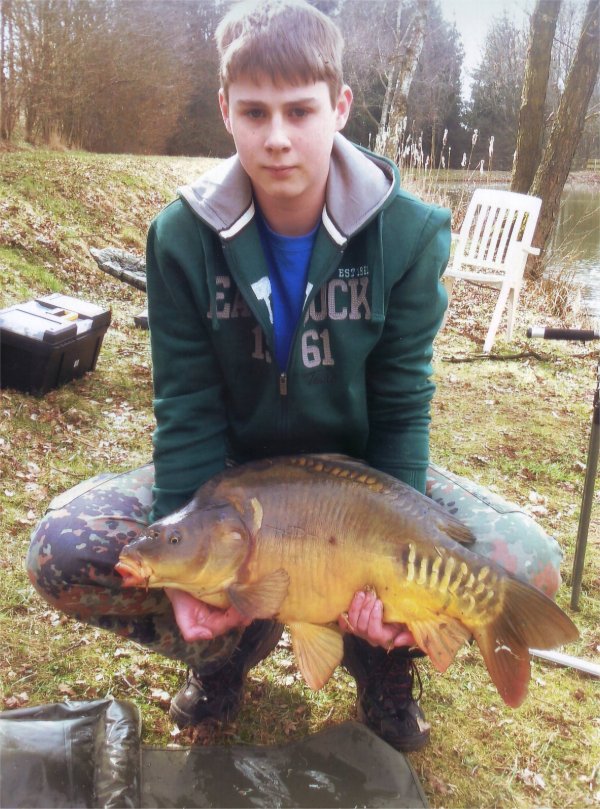 Gefangen: am 13.03.2015 am Mohrmühlweiher Waldmohr von Sven Büffel Angaben zum Schuppenkarpfen: ca. 8,0 kg schwer