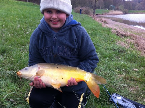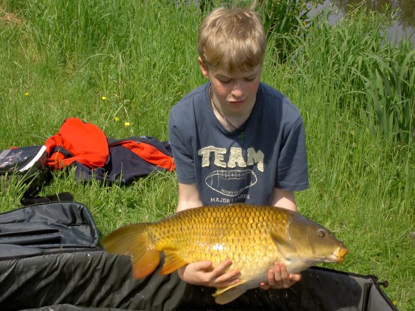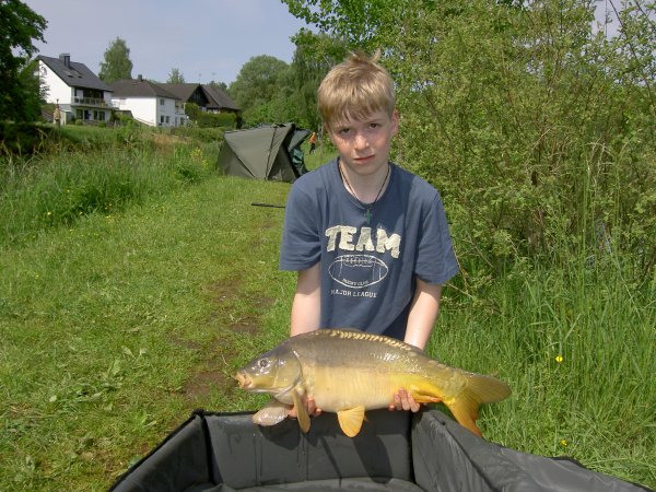 Gefangen: am Ohmbachstausee von Lukas Geyer (8 Jahre) Angaben zum Karpfen: 54 cm lang und 6-7 Pfund schwer