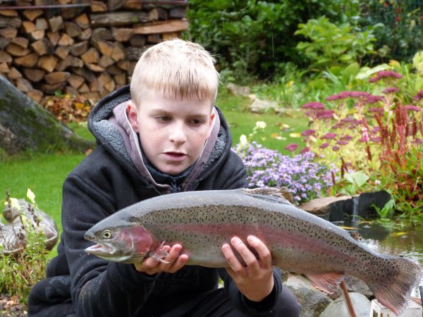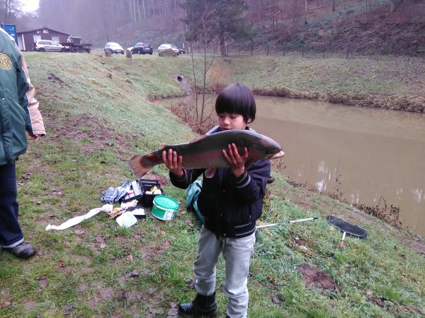 Gefangen: am 14.10.2012 in Waldmohr (Mohrmühlweiher) von Tobias Lang (11 Jahre alt) Angaben zum Regenbogenforelle: 56 cm lang und 2,5 kg schwer