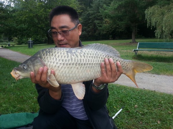 Gefangen: am 20.08.2013 in Jägersburg (Brückweiher) von Tianjun Chen Angaben zum Karpfen: 60 cm lang