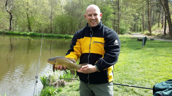 Gefangen: am 13.04.2015 am Kirrberger Weiher von Peter Peifer Angaben zur Schleie: 43 cm lang und 1,4 kg schwer
